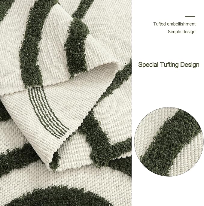- [Hand Woven Cotton Rug] Crafted from high-quality cotton, our living room rug is a perfect blend of durability and comfort. With its natural, skin-friendly, non-shedding, and non-fading qualities, this rug offers a soft, breathable, and inviting feel underfoot, making it an ideal addition to any room.