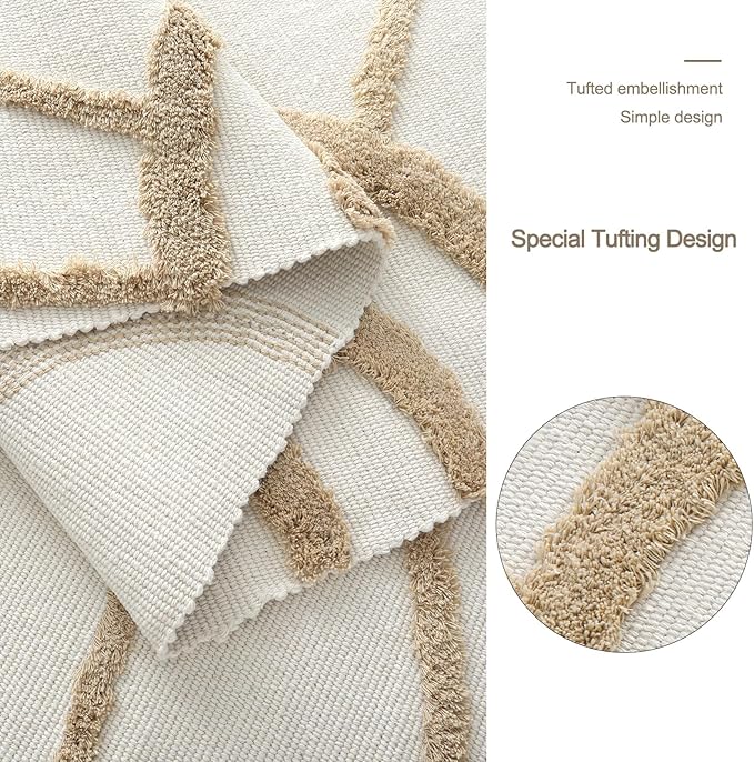 OJIA Boho Area Rug 5'x8', Washable Tufted Living Room Rugs Soft Bedroom Rug Nursery Rug, Farmhouse Cotton Woven Tan Floor Carpet Rugs for Dorm/Kids Room/Nursery/Classroom/Office