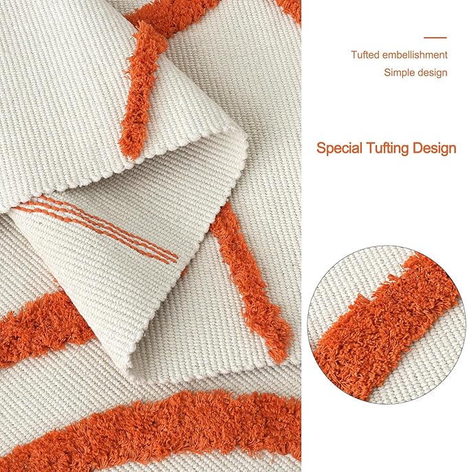 - [Hand Woven Cotton Rug] Crafted from high-quality cotton, our living room rug is a perfect blend of durability and comfort. With its natural, skin-friendly, non-shedding, and non-fading qualities, this rug offers a soft, breathable, and inviting feel underfoot, making it an ideal addition to any room.