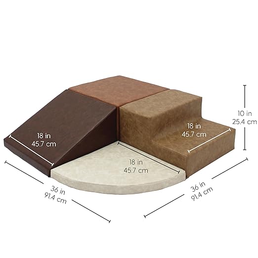 FDP Rustic Western Toddler Playtime Corner Climber, Distressed Faux Hide Leather, Indoor Active Play Structure for Toddlers and Kids, Safe Soft Foam for Crawling and Sliding (4-Piece Set), 11619-DA