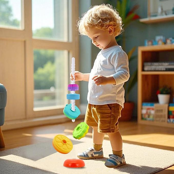 Educational Baby Spinning Stacking Toy, Stacking Rings Baby Toy, Montessori Learning Toys for Toddlers, Fine Motor and Sensory Toys for Kids, Gift for Baby Girls Boys Age 12+ Months