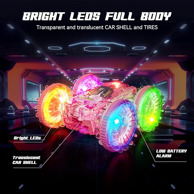 - Upgraded Translucent Shell with LED: The car shell and the tires are transparent and translucent, which enables the gorgeous lights scattering well from internal; and the lights can also be turned off when you are using in daytime. You and your family will have fun with it for a long time.