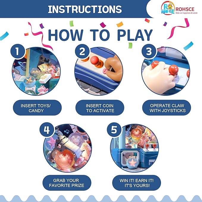 - Includes Toys Inside – Ready to Play: Each kids claw machine comes pre-loaded with over 35 mini toys, including plush figures, space-themed capsules, toy coins, and more. Fill the toy vending machine for kids with wrapped candy, small gifts, or party favors—customize the fun your way!
