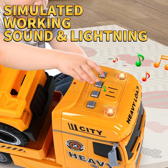 - 【EXCAVATOR AND DUMP TRUCK】:Get to work on your sandbox construction with outside toys that include fully functional parts including a moving dump bed on truck and a fully functional scoop, arm on excavator.The dump trcuk with lights and music.Multiple ways to play,use your child's imagination to create more play scenarios.