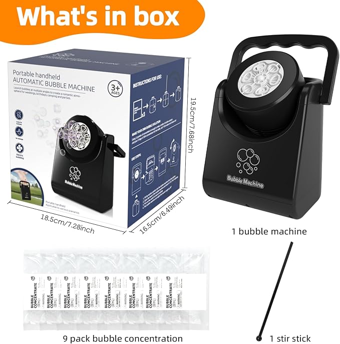 - Easy to Operate & Battery-Powered: Operating with 4 AA batteries (not included), the bubble machine is easy to operate. Manually adjust the angle to initiate the bubble machine, generating thousands of bubbles per minute for continuous enjoyment. It maximizes bubble production while minimizing waste.