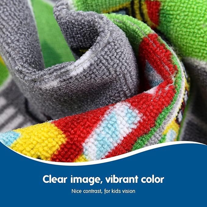 - Safety Non Skid: The Kids play rug for cars and trucks is made of 800g thick latex(rubber) backing that keeps it from slipping,and will stay in place ,not moves around way