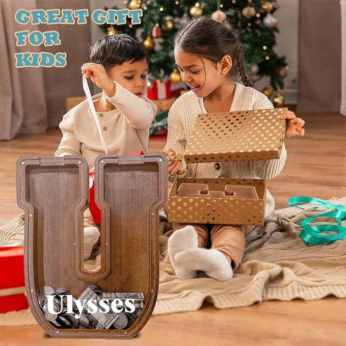 Personalized Wooden Letter Piggy Bank for Kids Larger Letter Piggy Bank for Boys and Girls Initial Coin Bank Customized Piggy Bank Perfect Wood Kids Money Bank for Birthday and Festival