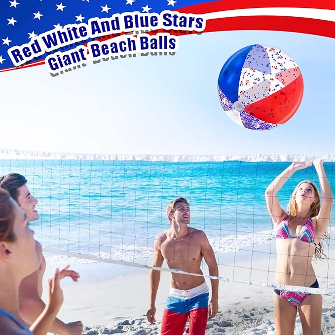 - 【Safe Material】Patriotic sequins beach swimming pool game is made of thick PVC material and tested kids safe materiel, not easy to be broken, but please keep it away from pointed items and fire. The surface of the beach ball is soft and elastic. This ball won't smash anything when it is in a kid's hands and won't let hurting people.