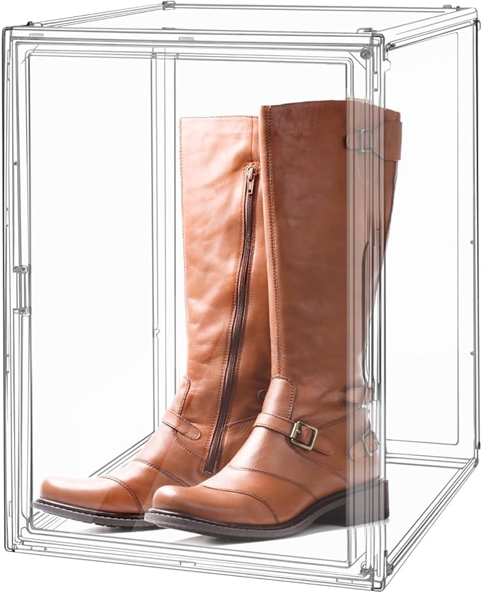 Clear Stackable Plastic Storage Bins with Lid, Dustproof Display Cases, Extra Large Figures Collectibles Showcase, Boot & Shoe Boxes, Helmet Protection Organizer (Transparent, XL-1 Pack)
