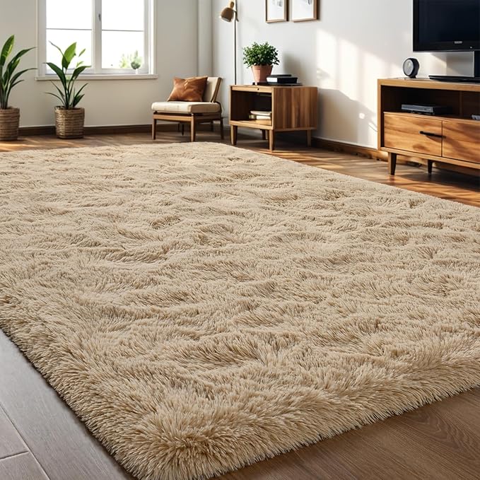 Nuttumico Fluffy Beige 8x10 ft Large Area Rugs for Living Room, Big Shaggy Floor Rug, Soft Plush Non-Slip Rectangle Carpet for Home Decor