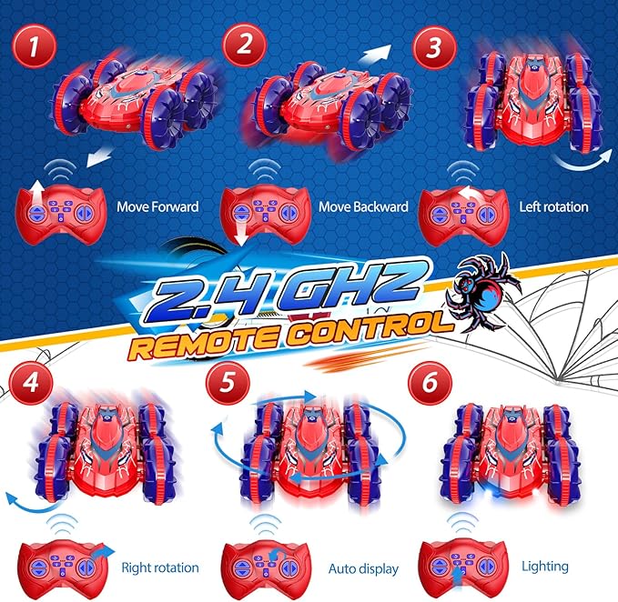 - PERFECT GIFT FOR KIDS: Perfect for various occasions, our waterproof all-terrain stunt toy car is an essential remote control car for summer fun and the best gift for children, age 3-10, for birthdays, Halloween, Thanksgiving, Christmas, and New Year's. It is ideal for thrilling adventures on land, sand, lakes, and grass