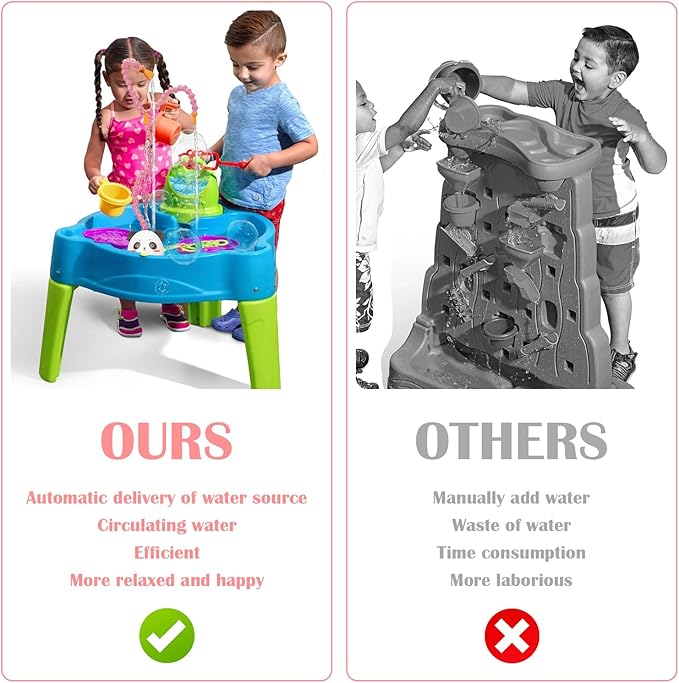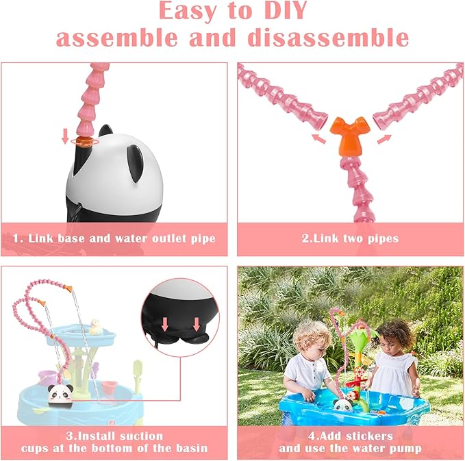 - 【VITALIZE WATER TABLE】Transform your child's water playtime with our adorable panda-shaped water table pump. Designed to create an engaging and interactive experience, it encourages kids to explore cause and effect while developing motor skills and creativity. Perfect for creating a splashy, shady oasis, this pump is an essential component for endless fun and learning through water play