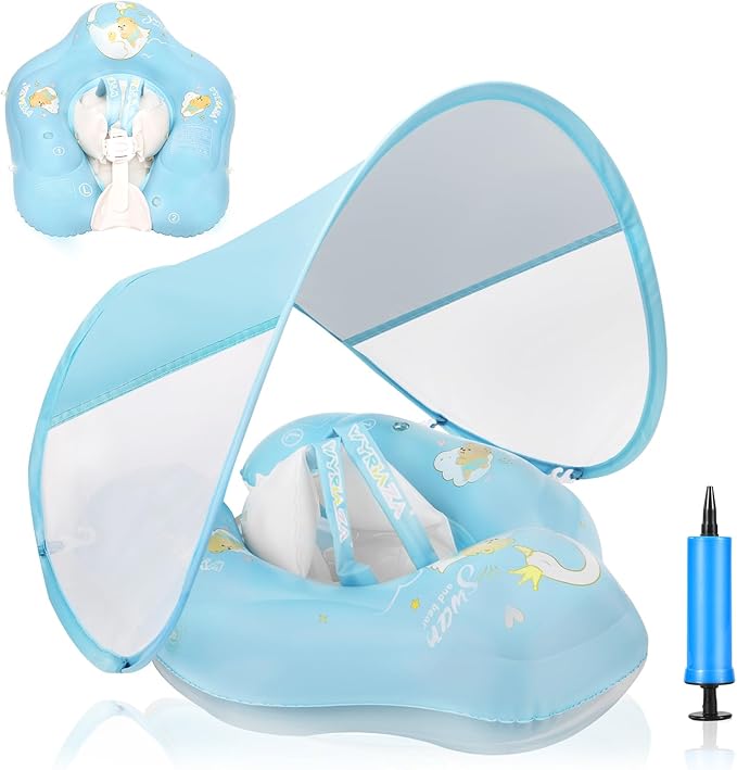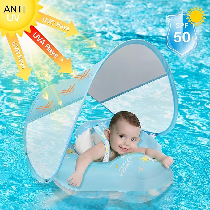 - 【Skin-friendly Material】① The Baby floats are made of upgraded PVC material, safe and environment- friendly, soft and odourless, designed for infants and toddlers. ② Added sun canopy, covered with UPF 50+ sun protection coating to protect baby's skin from UV rays.