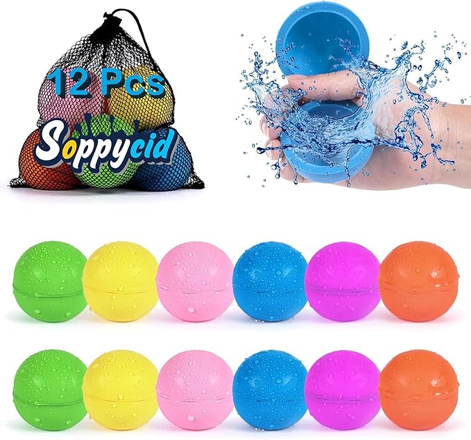 98K Reusable Water Balloons 12Pcs with Mesh Bag, Self Sealing Silicone Ball Latex-Free, No Clean Hassle, Easy to Fill, Summer Toys Water Toy Swimming Pool Beach Park Yard Outdoor Games Party Supplies