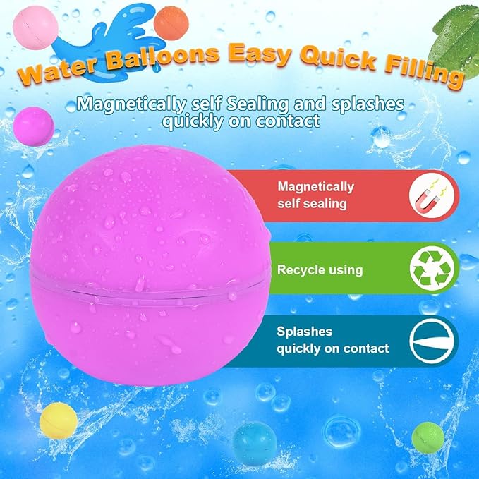 - 98K Creative Water Toys- Innovative magnetic self-sealing design that quickly fills and seals. Easy to open with slightly bump or pinch, suitable for summer, beach, swimming pool, pool party and outdoor water fight.