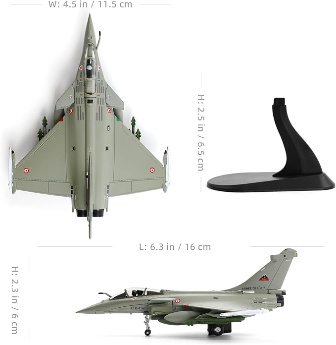 - 【Advanced Process and Technology】-The Dassault Rafale B aircraft display model is flawlessly painted using industrial paint baking technology. It avoids the problem of oxidative cracking or fading of the product, and is durable. This military fighter jet model also has fine details, such as cockpit, wings, engines, weapons, etc., as well as clear painting and logos, accurate proportions, and smooth surfaces, which restore the appearance of real fighter jets.