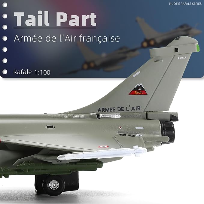 - 【Dassault Rafale B 】- The Rafale program began in the late 1980s when France launched a combat and tactical support aircraft program to replace the various types of aircraft used by the French Air Force and Navy. To date, the Rafale B has been actively involved in many military operations and international missions, including deployments to Libya, Afghanistan and the Middle East. the NUOTIE airplane model perfectly reproduces the Rafale B's exterior details.