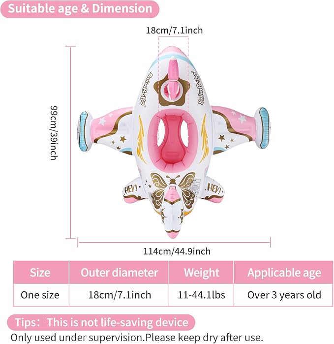 - 【Attractive shape】PINK Airplane boat pool float will introduce your baby to the joys of water, Suitable for children 3+ years old.