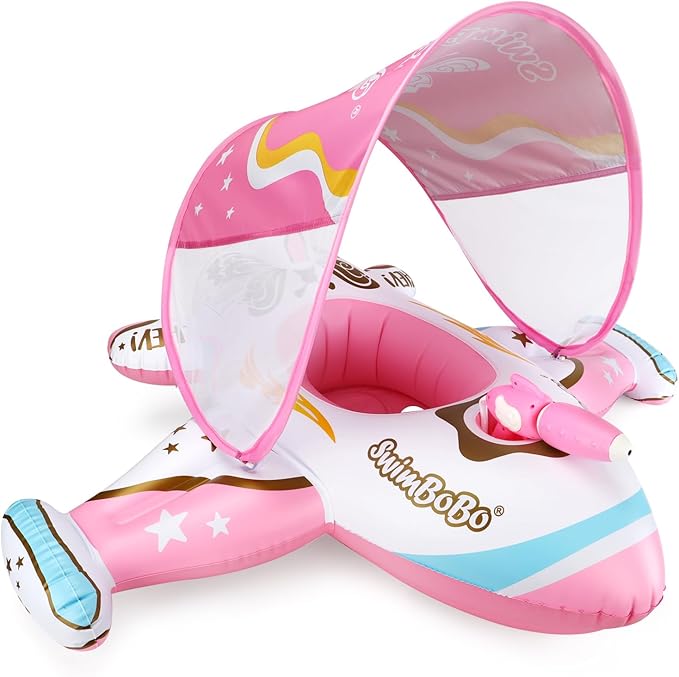 Swimbobo Toddler Pool Float Pink Inflatable Airplane Car Baby Swim Float with Water Gun and Safety Seat Pool Toys for Kids 3+ Years Old