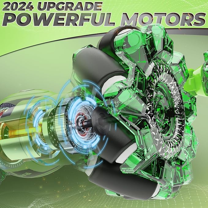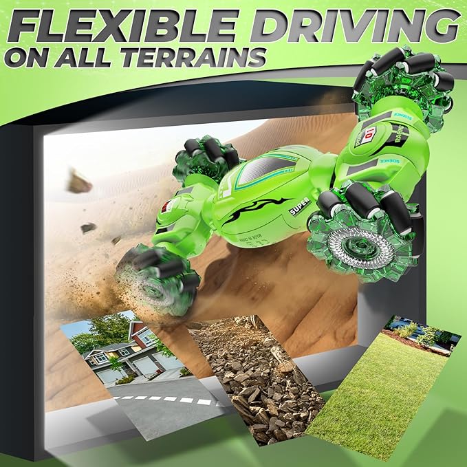 - [360° Rotating] 2024 Upgraded 4WD gesture RC car, can drift in all directions, double-sided flip, rotate in 360 degrees, racing drift, and switch between On-road and Off-road modes by gesture. RC cars with colorful lights and cool music, let kids experience excitement and fun