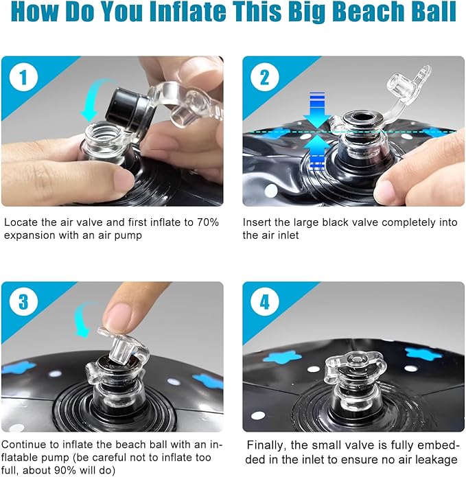 - Easy Inflation: The big beach ball features dual valves for excellent sealing, ensuring prolonged air retention throughout the entire ball. Due to its larger size, we recommend using an air pump for inflation.