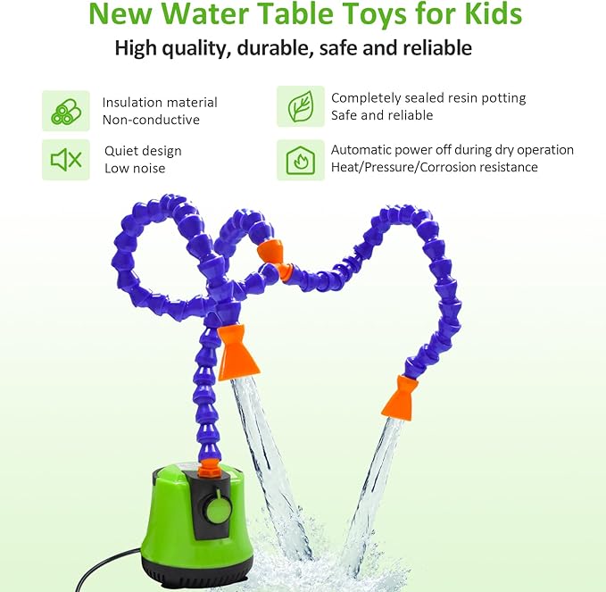 • 【RUNNING WATER TABLE】Water table pump are essential accessory for water table or swimming pool in summer. Water pump for water table keeps the water flowing to form a waterfall, free hands and adding more fun for children. Water table with pump provide fun, engaging, and educational water play, bring an engaging and interactive summer experience for kids.