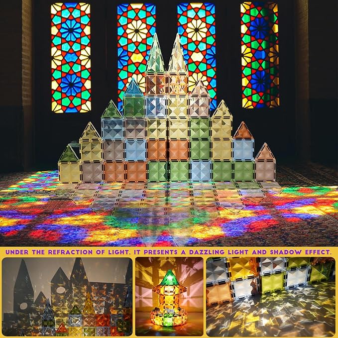 - 💝🎅Great Gift for Birthday, Holiday: More magnetic tiles mean more fun, and with our set, the possibilities are endless. Perfect for group play, these tiles strengthen bonds as you build together. Ideal for classrooms, kindergartens, and daycare centers, they help kids develop vital skills like construction, color recognition, sorting, and stacking. A wonderful gift for boys and girls, these tiles are sure to captivate the hearts of your children and grandchildren.
