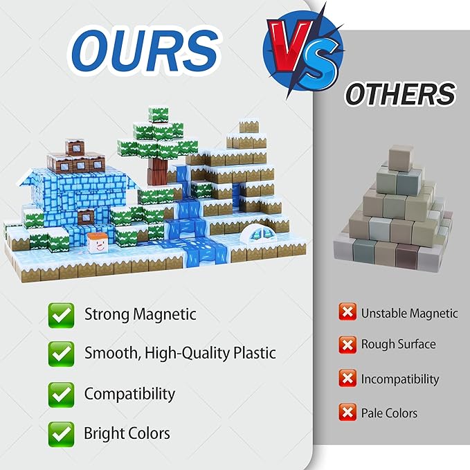 - Excellent Safety First: Peace of Mind with Secure Magnets. We prioritize safety in our magnetic building cubes. Crafted from food-grade ABS plastic and coated with natural, water-based paint, they are safe and durable for small hands, best magnetic blocks for kids ages 4-8 and above.