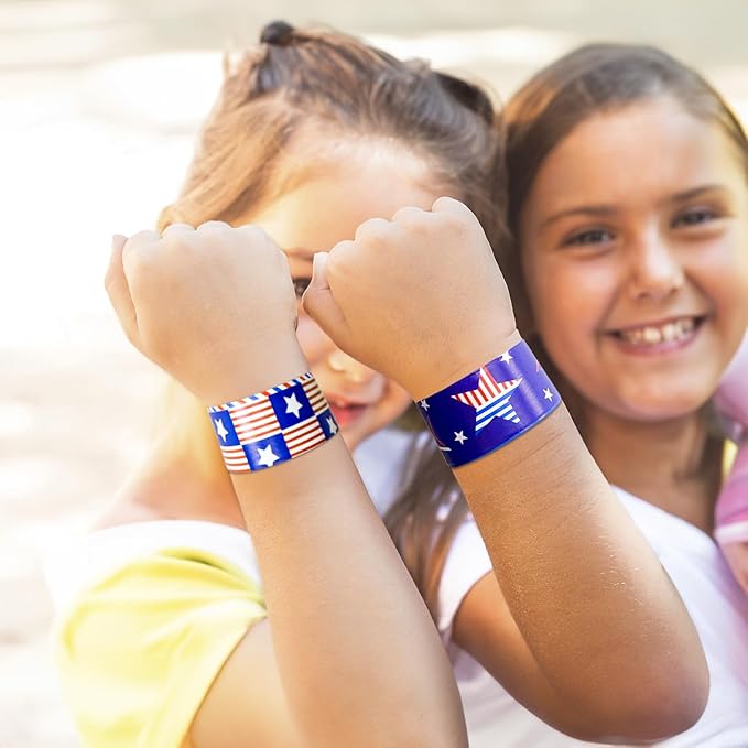- 【Versatile Fun for Kids】Whether you're hosting an Independence Day party or looking for prizes for school events, these slap bracelets are a hit. They make fantastic party favors, event day gifts, or prizes for students of all ages. It's a timeless toy that brings joy to any occasion.