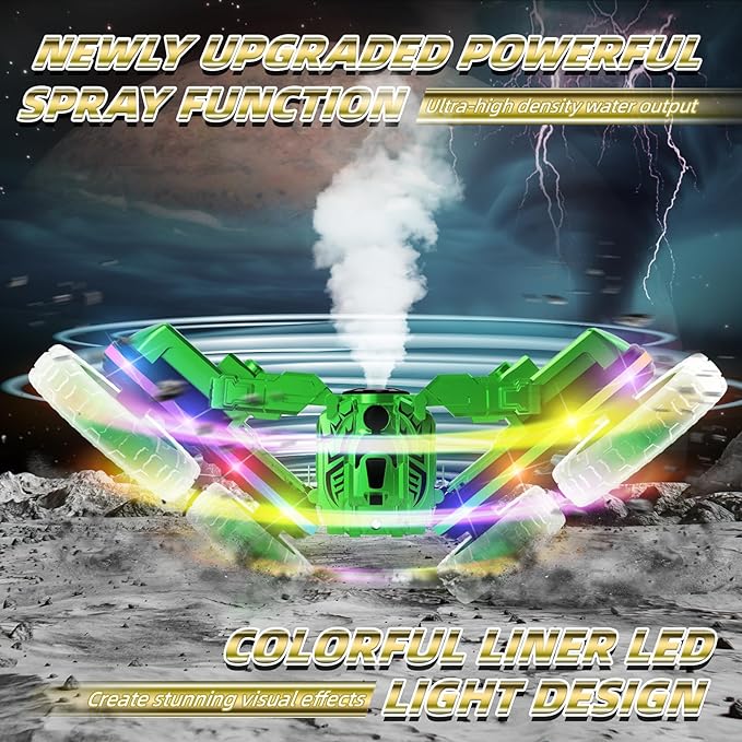 - 🚙【Spray Function & Colorful Linear Light】The newly upgraded spray function boasts a larger capacity, fuller coverage, and a longer range. The unique, cool linear light design makes your car the most eye-catching presence at night. The spray and lights can emit colorful sprays, providing you with a fun experience unlike other stunt cars.
