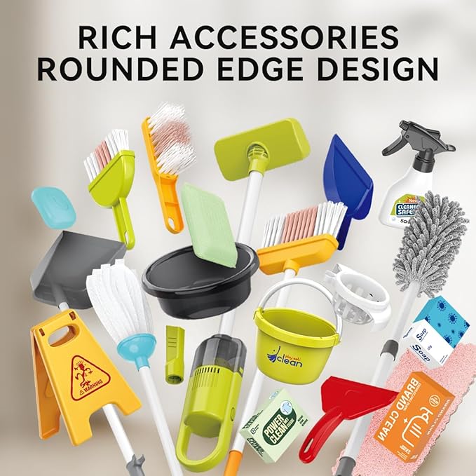 - 【Encourage Hands-On Play and Ideal Gift】Perfect for Pretend Housework"Our cleaning toy set is an exceptional gift choice that encourages open-ended play and creativity. Perfect for parties, pretend games, role plays, school classes, and special occasions like Christmas and birthdays, it is sure to bring joy and excitement. Additionally, it instills the importance of keeping the house clean, fostering good habits, that will help the child grow up.
