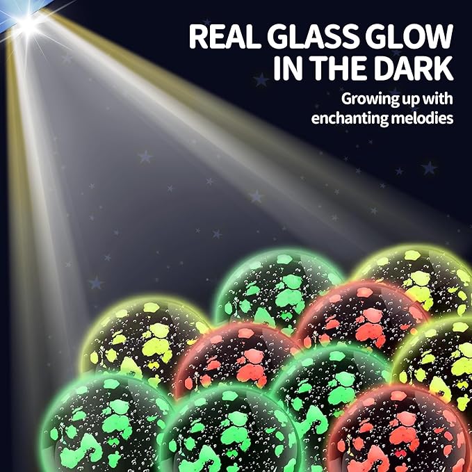 - GLOW-IN-THE-DARK MARBLES: set includes glow-in-the-dark marbles that light up in the dark, adding an exciting visual element to the play experience. Perfect for night-time play or simply to make the marble game even more thrilling