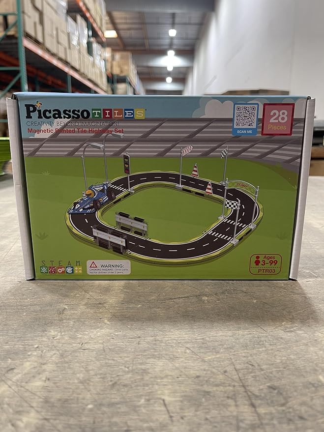 - DREAM BIG & BUILD BIG: Elevate your creativity with our 28pc Magnetic Printed Tile Highway Set. This pretend play construction building toy features 8 traffic theme tile, 2 road bumper barrier tiles, and an 18pc street sign accessory kit with complementary stickers to enhance a realistic street and traffic setting. This race track can be used as a stand alone playset or as an add on to other full sized race car tracks sets. Transform racing structures with these exciting magnet themed additions