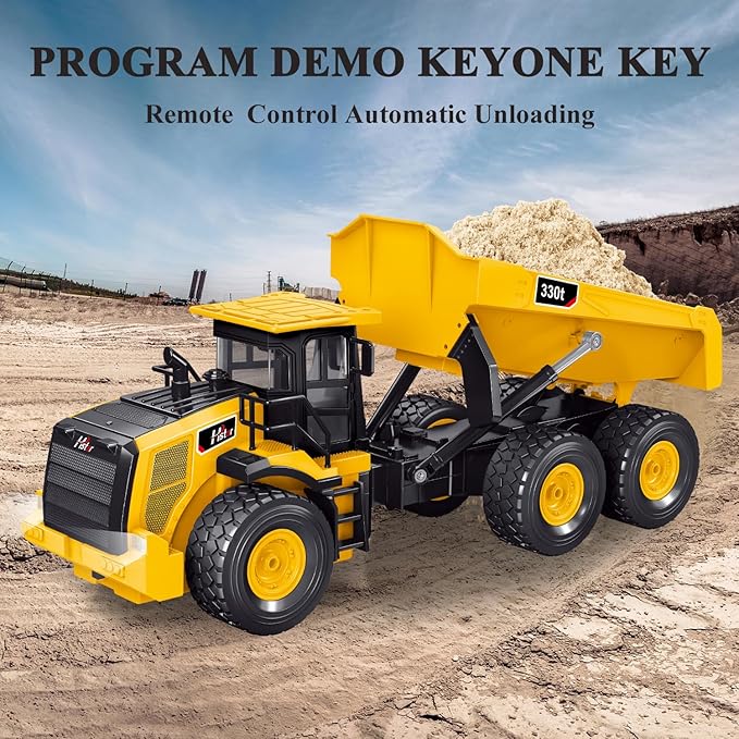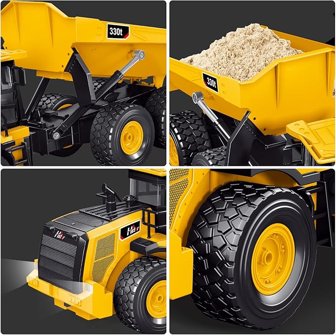 - Realistic Sound and Light:Rc dump truck High simulation of realistic lights and an articulated body, car operation headlights alternately light up, the night can also be carried out work. Sound effect one-touch switch design, simulation of the sound of the car when working, to give children the ultimate experience.