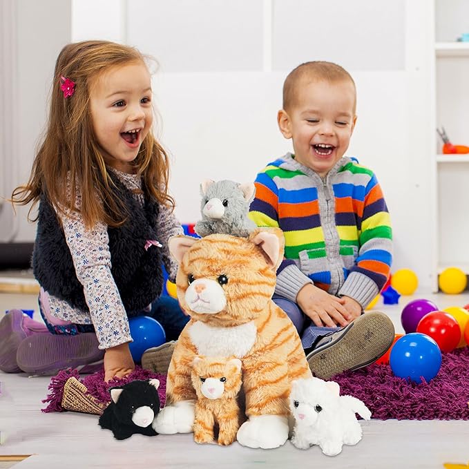 - 5-In-1 Cat Plush Animal: Youthfuljive's cat stuffed animal toys contain 1 mommy cat and 4 cute cat babies plushie. These cat plush can be used for story time or tea parties to enhance children's imagination and creativity.