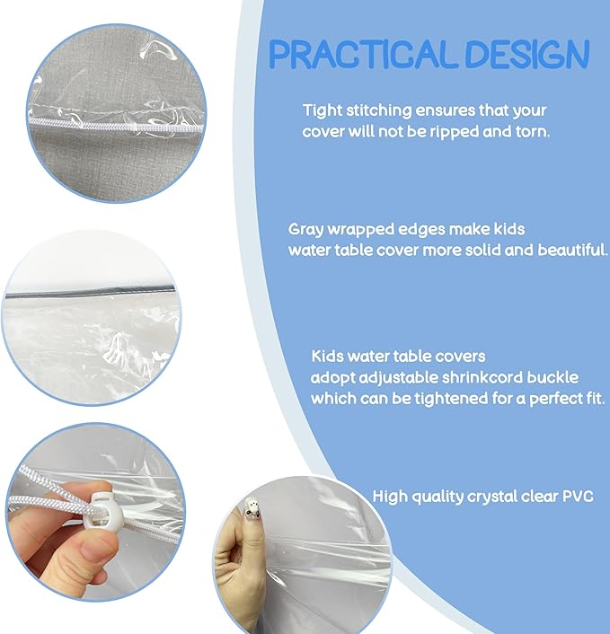 - Our cover features a Transparent PVC design, allowing for unobstructed visibility. Protect the water stored in the water table free from leaves, dust, Invasion of dirt, save your precious time and money protecting your children's happiness