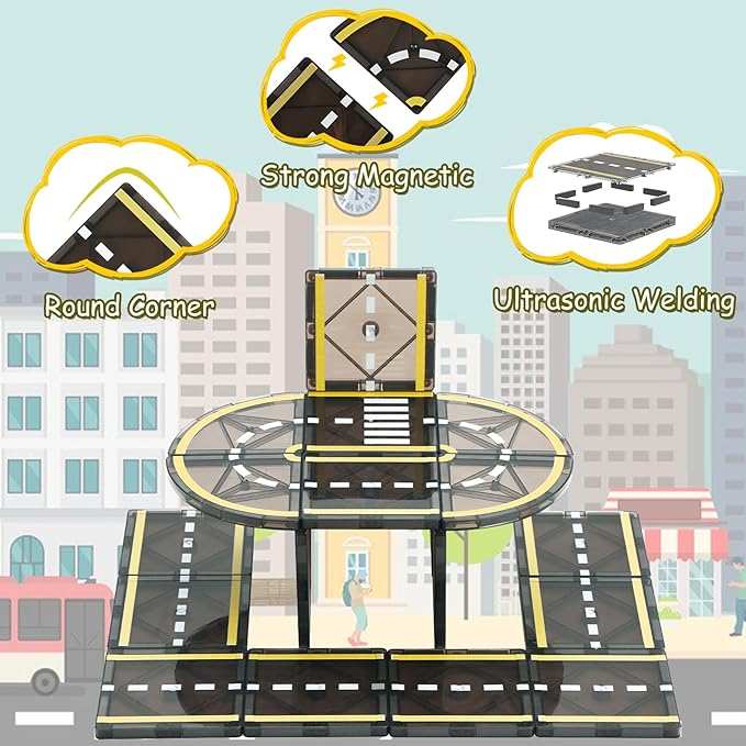 Magnetic Tiles Road Set, STEM Magnet Building Blocks for Toddler Kids, Montessori Educational Toy Gifts for 3+ Year Old Boys & Girls