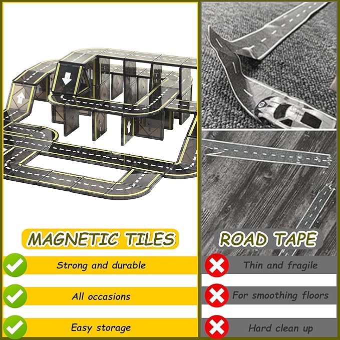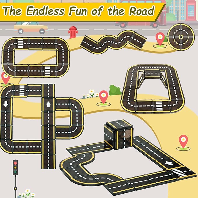 - Encourage children to build creatively with our magnetic tile road building set! This block set can be used as an expansion pack to connect with existing magnetic tiles. The set contains only road elements, So you don't have to worry about other accessories you don't want.Children can keep exploring new road designs and building plans.
