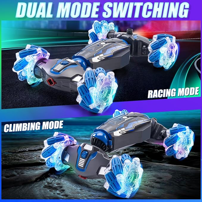 4WD Stunt Car, 2.4 GHz Gesture Sensor RC Cars, Double-Sided Vehicle 360° Flip RC Twist Buggy with Music Spray - Best Christmas and Birthday Present for Boys and Girls Aged 6-12 (Blue)