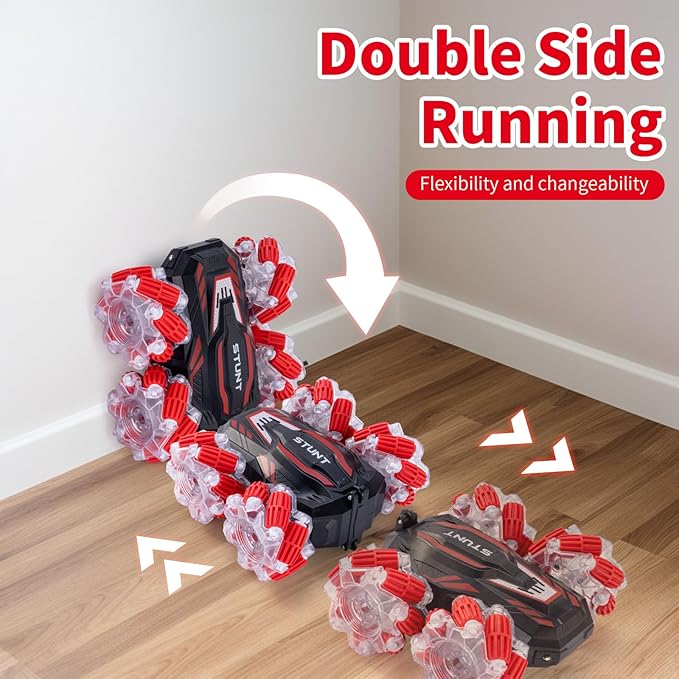 - Great and Cool Presents: The 4WD High-Tech RC stunt gesture sensing two-sided car is made of solid, high-quality, and recyclable materials, making it perfect for both boys and girls for birthdays, holidays, Halloween, and Christmas