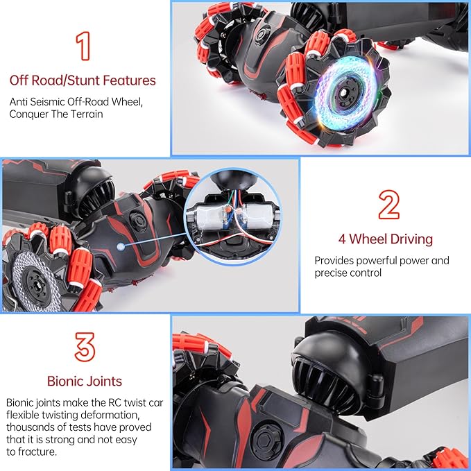 - Suitable For All Terrains: Gesture sensing rc stunt car comes with unique roller traction tyres for indoor and outdoor adventures such as gravel, lawn, sand, dirt, stairs, etc., very flexible and easy to control
