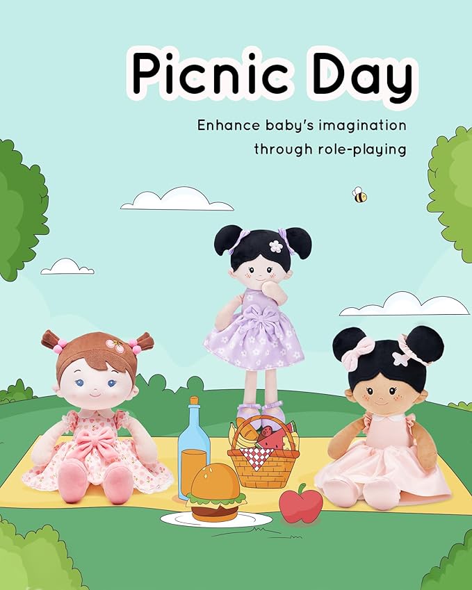 Soft Baby Doll Toys (16''), My First Baby Rag Doll for 1 Year-Old Girl Birthday Gift,Christmas Plush Toys Gift for Toddler Kids Infants-Cherry
