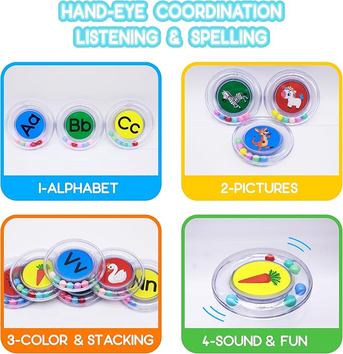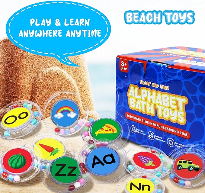 - Preschool Alphabet Learning Toy - Featuring colorful letters and brightly colored pictures inside, the waterproof baby bath toy encourages toddlers to learn alphabet, colors and images, making bath time a delightful learning experience with our safe alphabet bath toy set