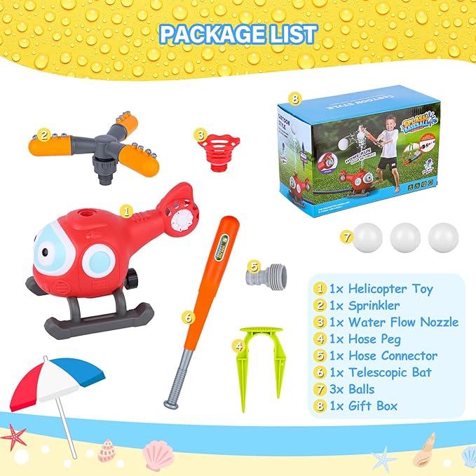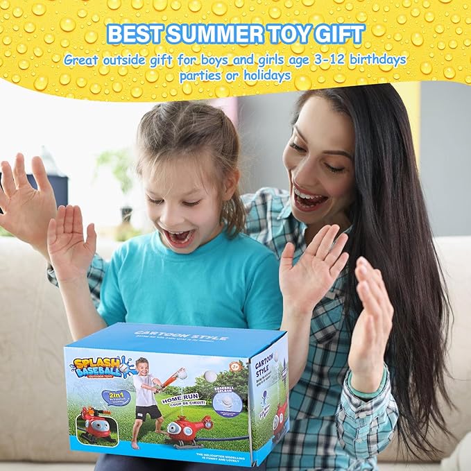 - Best Backyard Toys Gifts: Our helicopter kids water toy is a safe and fun toy for tball beginners. Great outside gift for boys and girls 3 4 5 6 7 8 9 10 11 12 years old birthdays, parties or holidays!