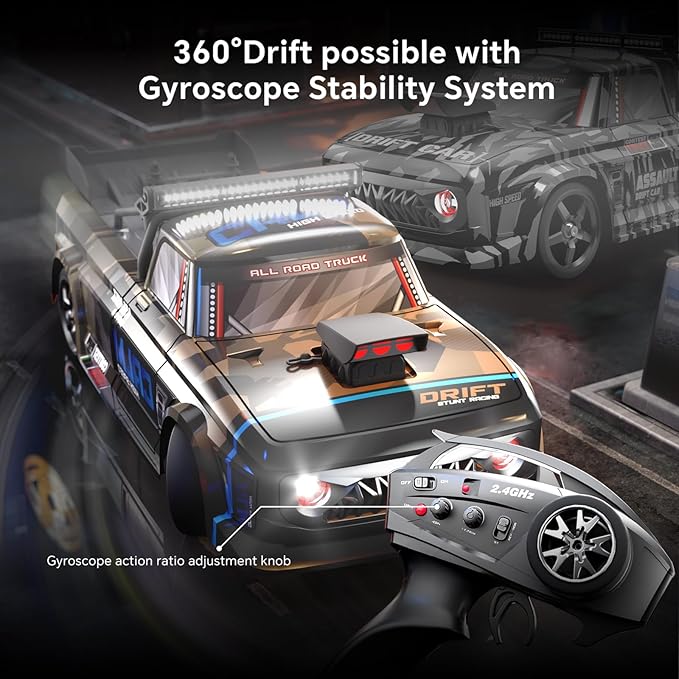 - Drift RC Car with GYRO: RC sport car has the function of ESC car stability system, which can correct the car's direction when the car loses control. The sensitivity of the car gyroscope sensor can be adjusted through the ESC knob of the transmitter