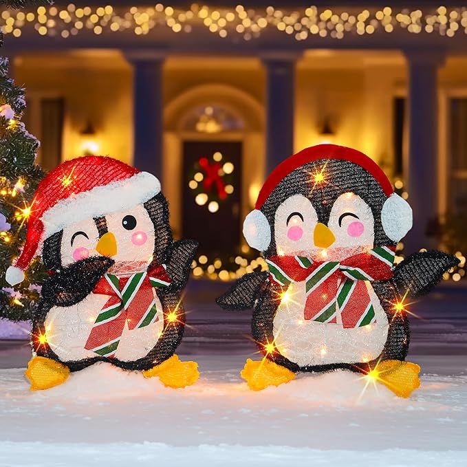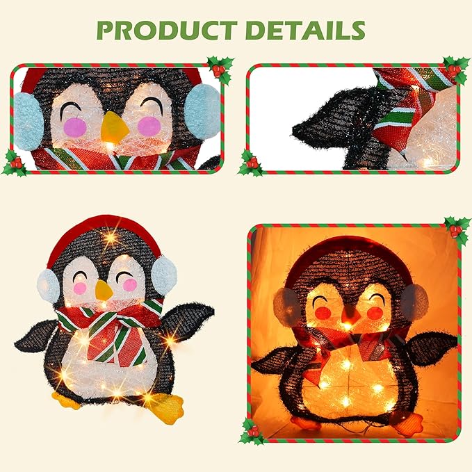 - Easy to assemble: This Christmas PENGUIN Set lawn ornament is designed for simple assembly and convenient storage, making it perfect for placement in your yard, on your front porch, in your entryway, or beside the Christmas tree to anticipate Santa's visit.