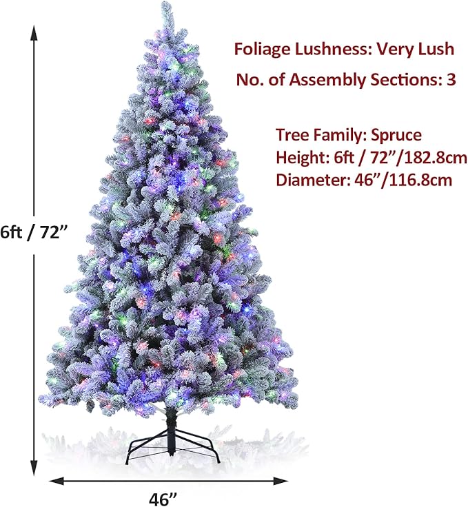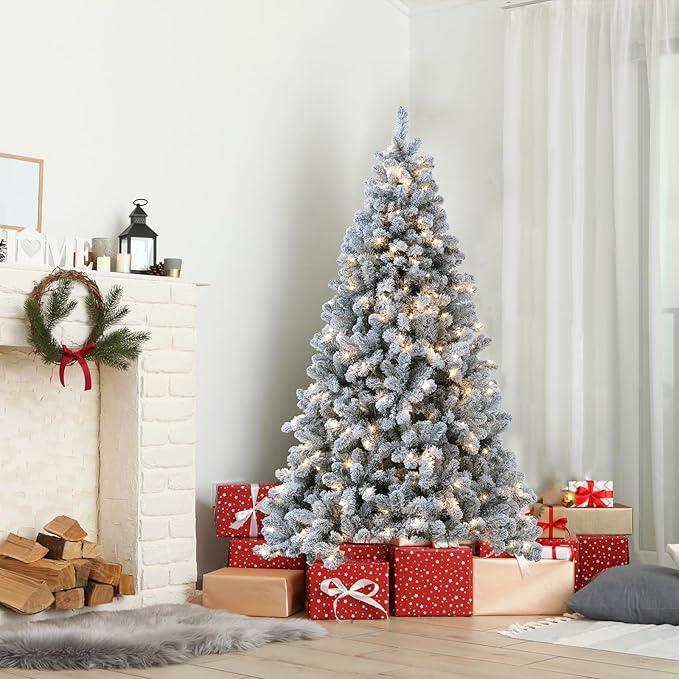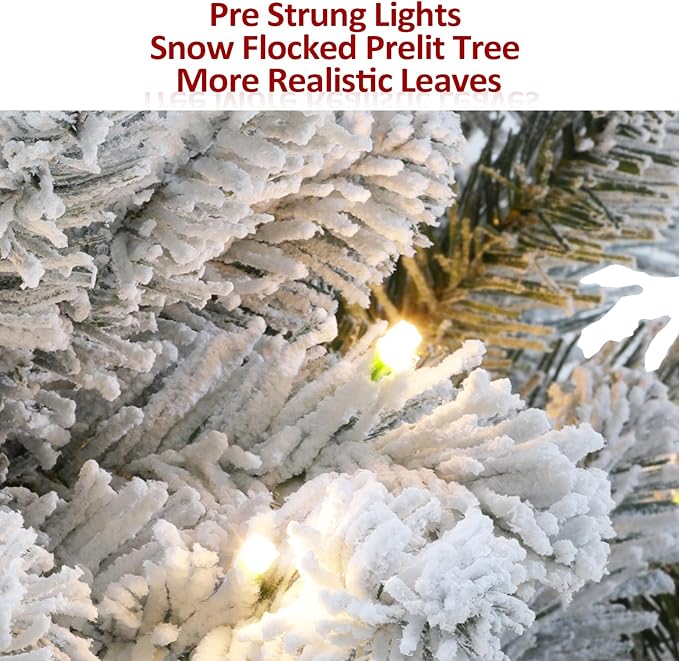 - Realistic Appearance: Flocked Christmas trees are designed to look like real snow-covered trees, create a beautiful and festive holiday display, adding a touch of natural beauty to your home. The prelit Christmas tree has fluffy branch tips, which are fireproof and waterproof, safe for long term use.