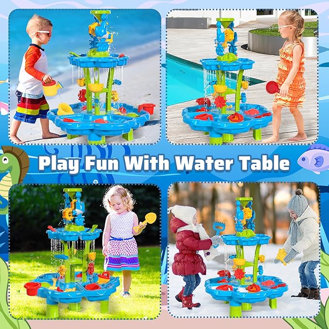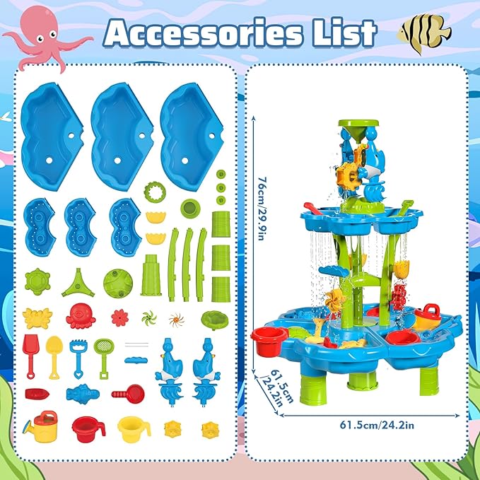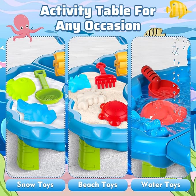 - Multifunctional Sand and Water Table - Our Sand and Water Table set is not only for playing in water but you can also use sand. Your child can fill the bottom with water and the top sections with sand or vice versa. This toy can be used indoors or outdoors allowing it to be played with all year round. Your child can play in the garden in their bedrooms or you can even take this to the beach on a summer’s day.
