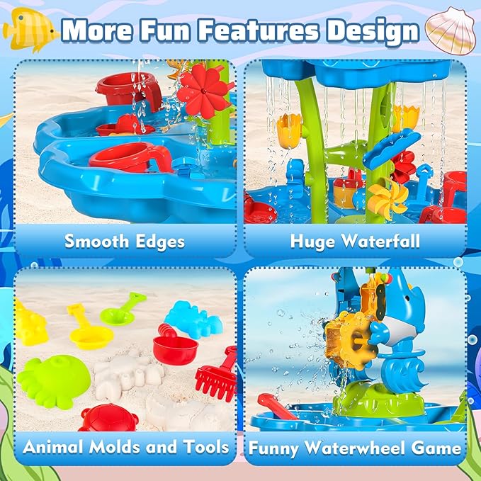 deAO Sand and Water Table Beach Toys Outdoor Activities Play Table for Kids Sand Pit Water Table Children Garden Toy Beach Play Activity Set Indoor Outdoor Summer Toys for Girls Boys Kids