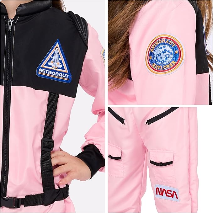- AWESOME SET: The astronaut costume set includes everything needed for an authentic and fearless astronaut look: 1 pink astronaut jumpsuit and 1 movable visor astronaut helmet.